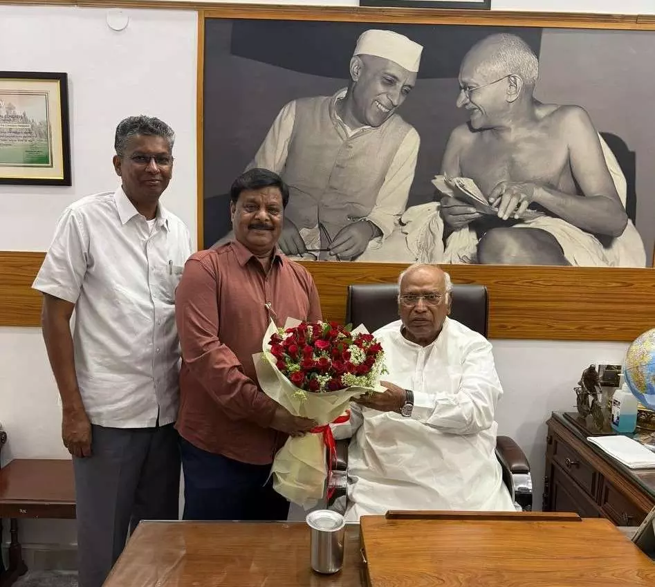 ದೆಹಲಿಯಲ್ಲಿ ಎಐಸಿಸಿ ಅಧ್ಯಕ್ಷ ಮಲ್ಲಿಕಾರ್ಜುನ ಖರ್ಗೆ ಅವರನ್ನು ಭೇಟಿ ಮಾಡಿದ ಸಿಎಂ ಆಪ್ತ ಸಚಿವರಾದ ಹೆಚ್.ಸಿ. ಮಹದೇವಪ್ಪ ಹಾಗೂ ಸತೀಶ್ ಜಾರಕಿಹೊಳಿ